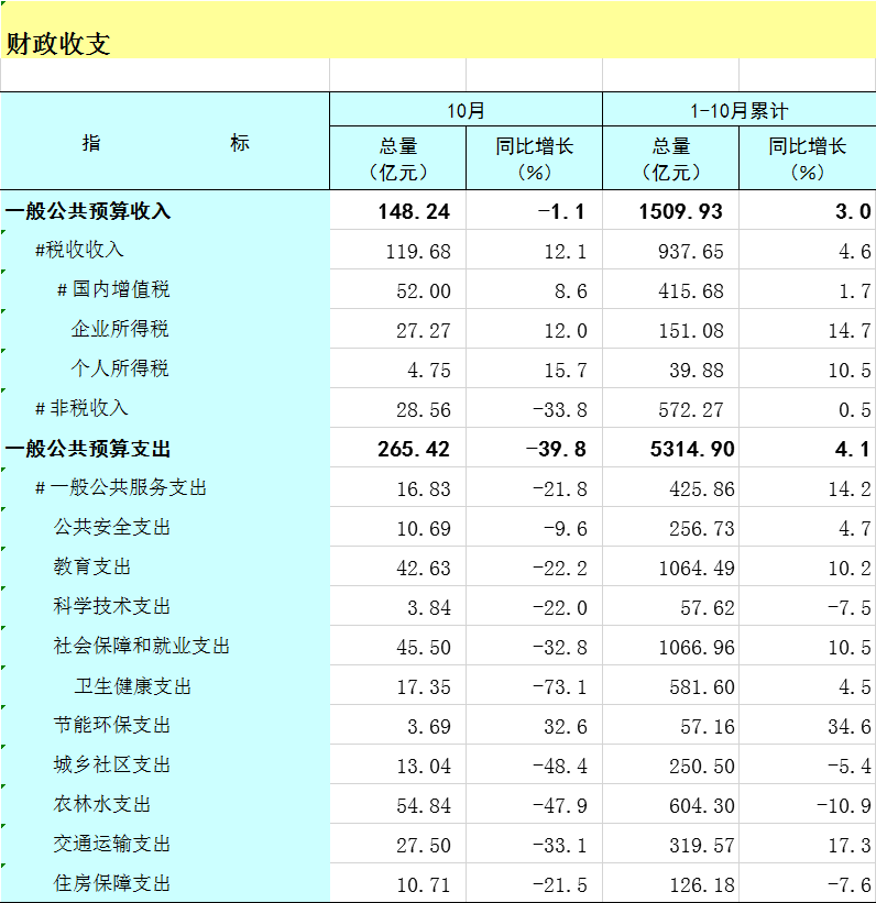 2025年1-10月广西财政收支