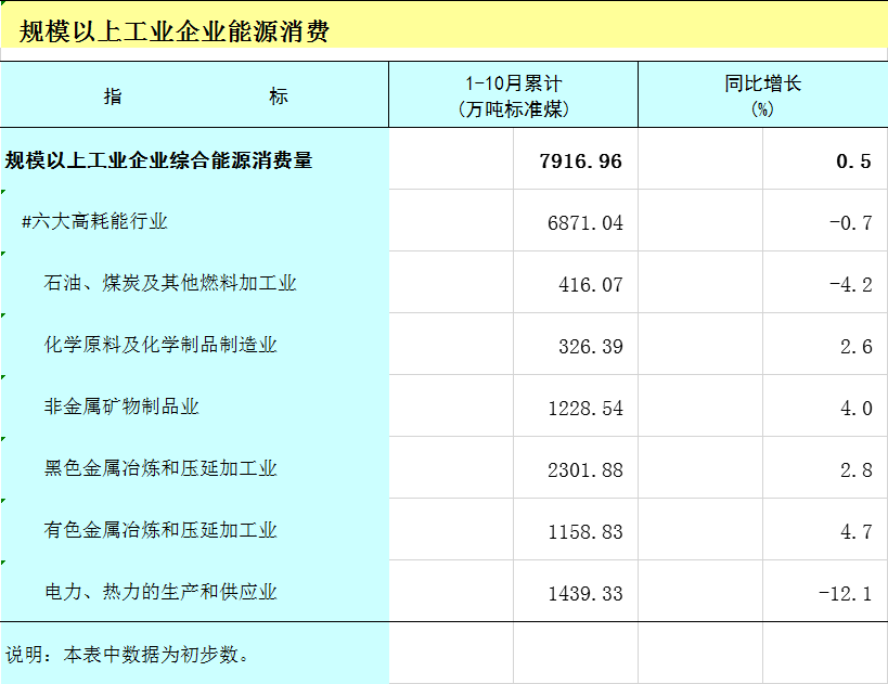 2025年1-10月广西规模以上工业企业能源消费