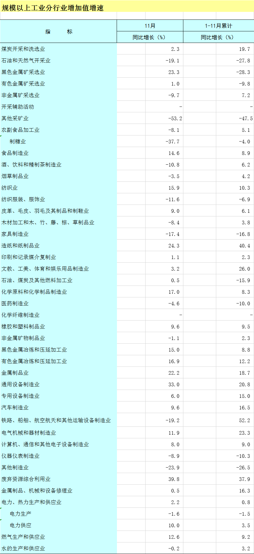 2025年1-11月广西规模以上工业分行业增加值增速