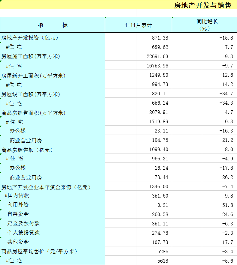2025年1-11月广西房地产开发与销售