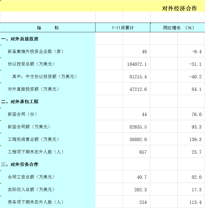 2025年1-11月广西对外经济合作