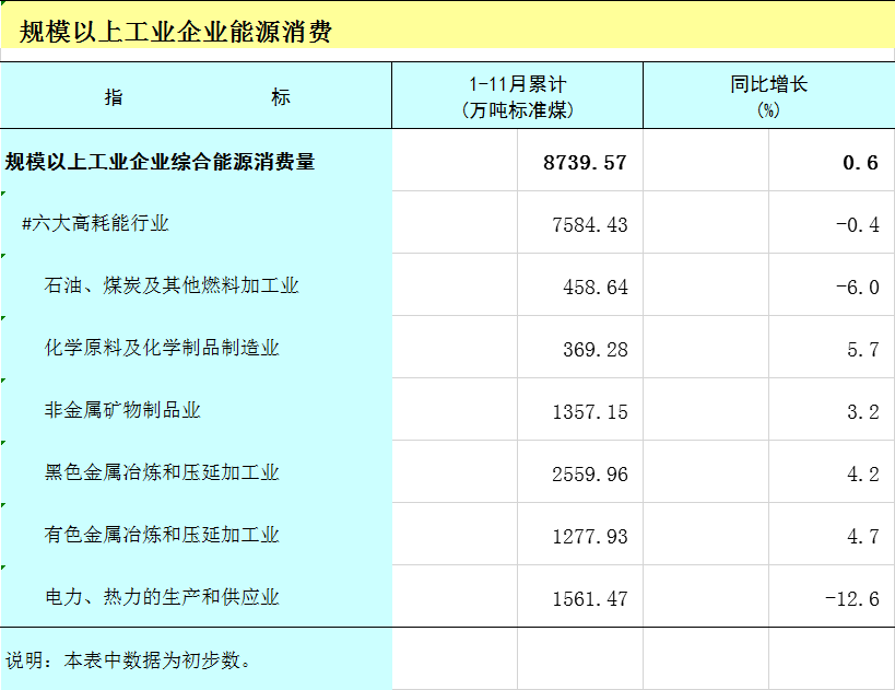 2025年1-11月广西规模以上工业企业能源消费