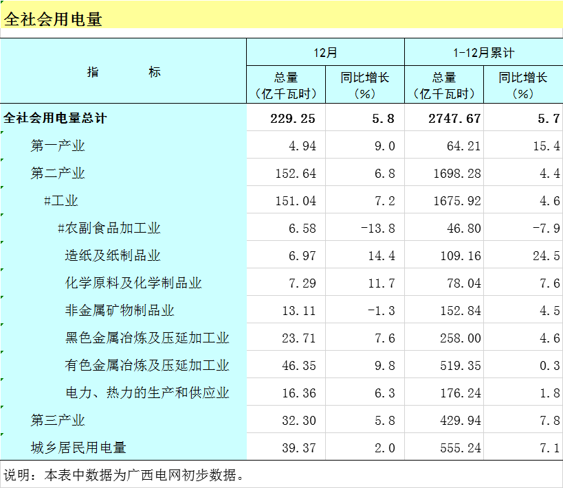 2025年1-12月广西全社会用电量