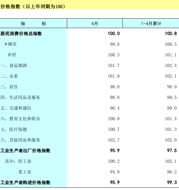 2023年1-4月广西价格指数(以上年同期为100)