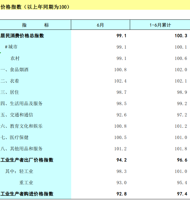 2023年1-6月广西价格指数(以上年同期为100)