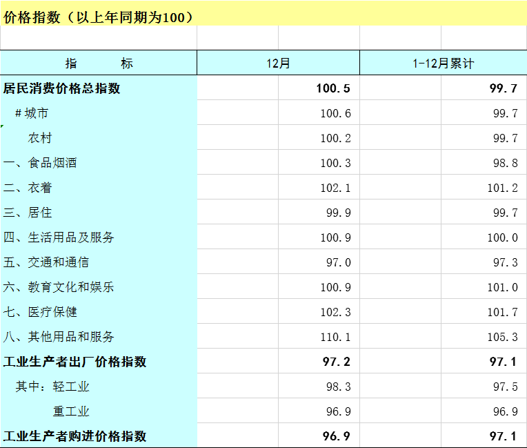 2025年1-12月广西价格指数(以上年同期为100)