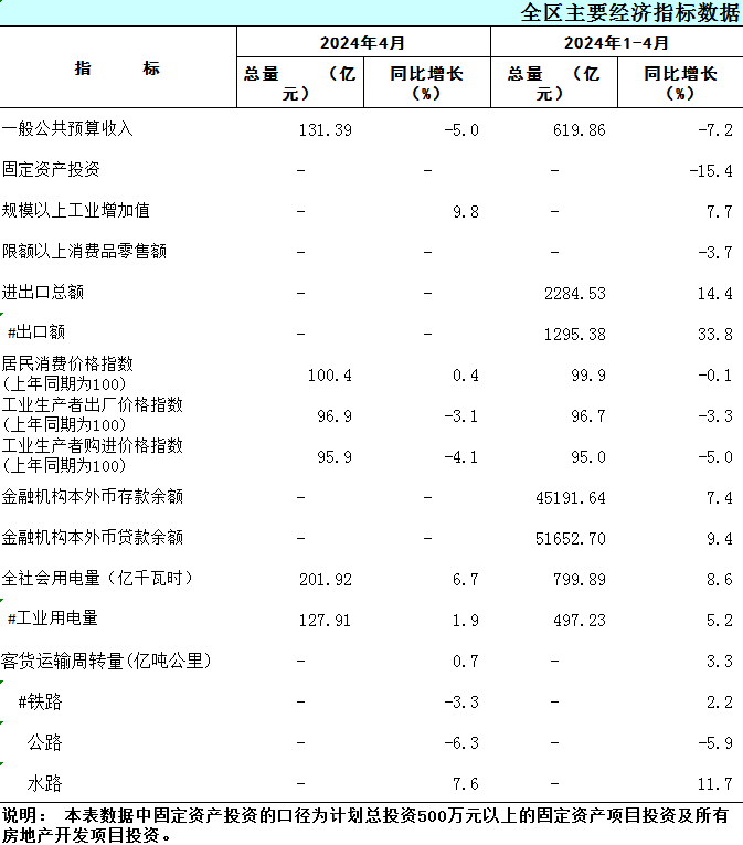 2024年1-4月广西主要经济指标数据