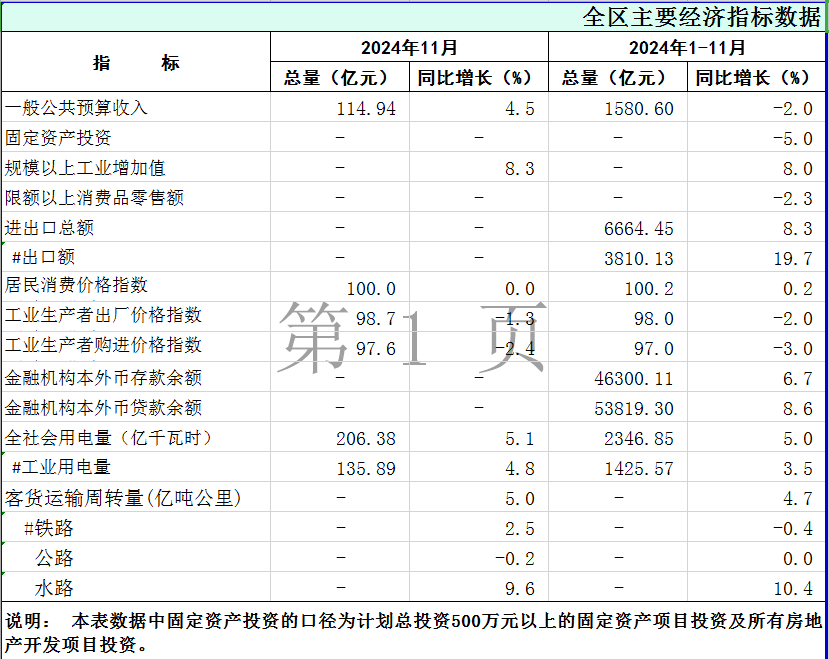 2024年1-11月广西主要经济指标数据