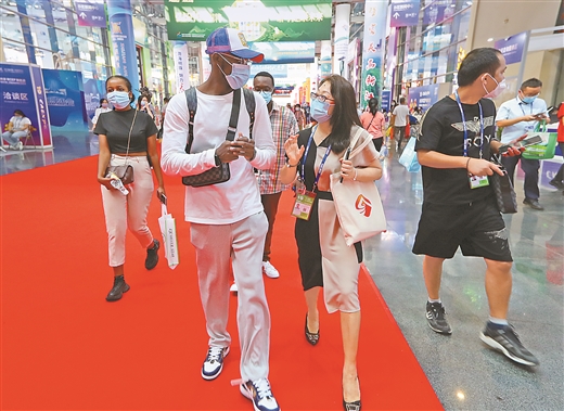 ③在南宁国际会展中心,国内参展商在跟外国观众洽谈合作事宜。 徐天保 何学俏/摄