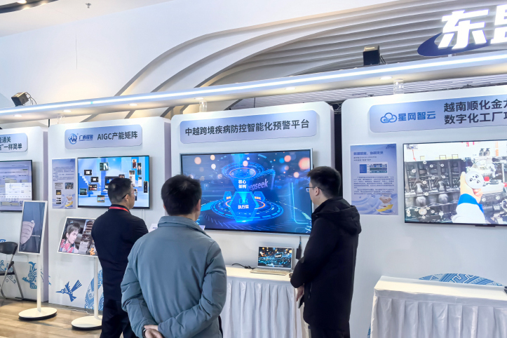 走进“AI赋能千行百业”展区,智慧农业、工业视觉、基层治理、跨境合作等六大板块集中呈现,智慧菇房、工业视觉监测、基层治理AI工作站等展项,让“智力AI”触手可及。AI+东盟合作展区更凸显广西区位优势,AI标准、跨境电商智能客服、中越跨境疾病防控智能化预警平台等,清晰勾勒出“合力AI”推动区域互联互通的现实路径。