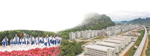 左图:梧州市西堤公园内,老年人正在练习太极拳。何华文 摄 右图:都安瑶族自治县澄江镇仙埌社区是河池市最大的移民搬迁安置点,一排排崭新的楼房错落有致。李雪松 摄