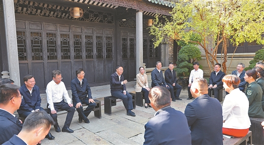 11月3日,自治区党委书记、自治区人大常委会主任刘宁来到红七军军部旧址——粤东会馆,向当地干部职工宣讲党的二十大精神,交流学习心得体会。黄克 摄