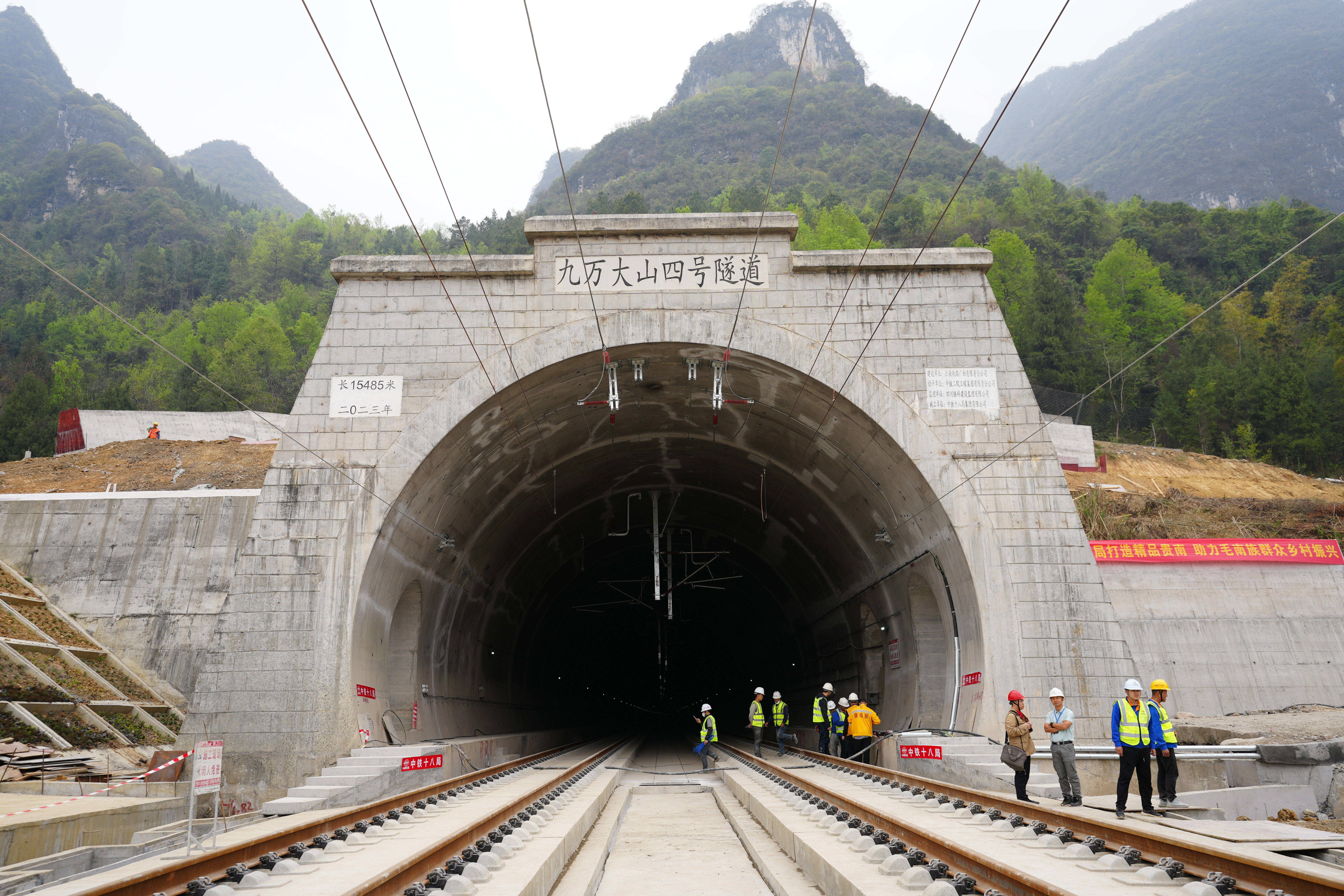 贵南高铁穿越贵州高原、苗岭山脉,横跨清水河、澄江河、红水河等多条河流,沿线山高谷深,地形地貌复杂多变,线路桥隧比高达90%。项目自2017年12月开工建设以来,国铁集团组织各参建单位克服各种困难,创新工艺工法,架设了澄江、桐子园双线特大桥等199座桥梁,建成了九万大山一号、都安隧道等107座隧道,确保了项目优质高效建成。