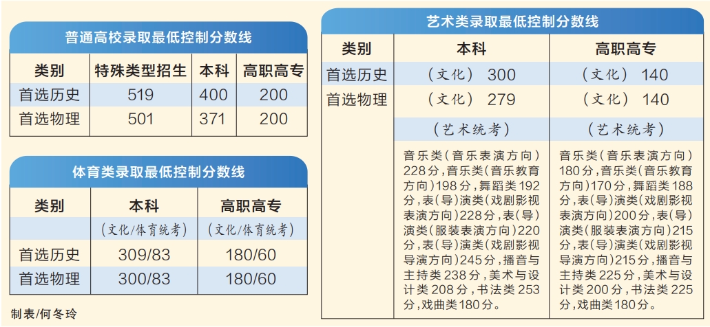 6月25日12:00,广西划定并公布2024年普通高校招生录取最低控制分数线。今年,广西合并了本科批次,只划定了本科线,首选历史400分,首选物理371分。特殊类型招生批次录取最低控制分数线首选历史519分,首选物理501分(详见表)。高考考生成绩一分一档表也同时公布。