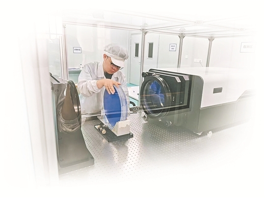 工作人员在中试基地利用激光干涉仪检测样品。韦君勇 摄