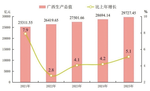图1 2021—2025年广西生产总值及其增长速度