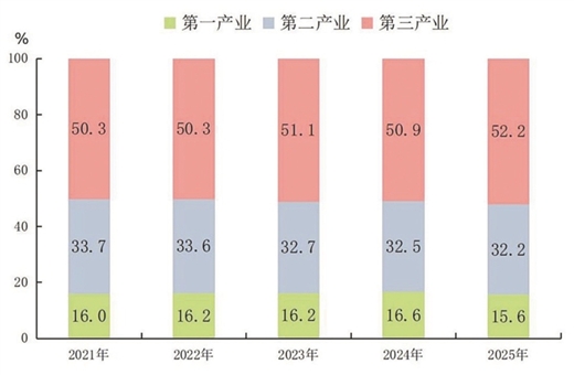图2 2021—2025年广西三次产业增加值占GDP比重