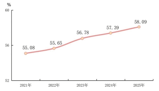 图3 2021—2025年年末广西常住人口城镇化率