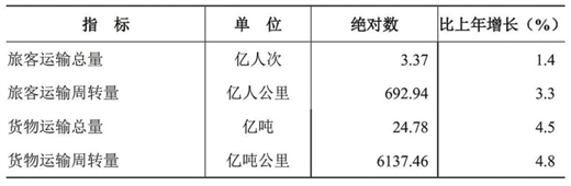 全年旅客运输总量3.37亿人次,比上年增长1.4%。旅客运输周转量692.94亿人公里,增长3.3%。