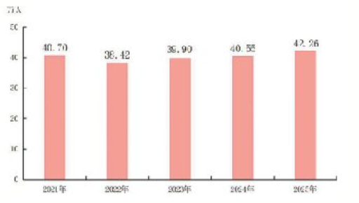 图4 2021—2025年广西城镇新增就业人数