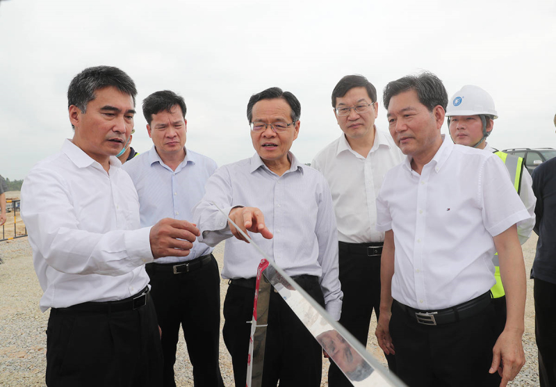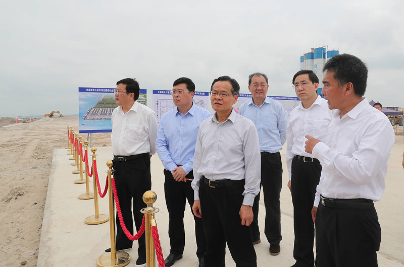 4月20日,自治区主席陈武来到铁山港东岸码头,考察榄根作业区码头泊位工程项目建设情况。