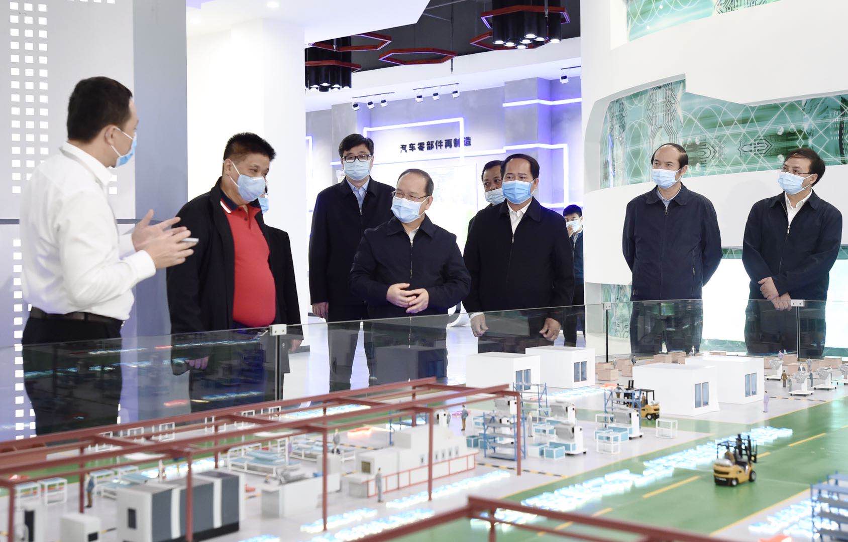 4月21日,自治区党委书记、自治区人大常委会主任鹿心社来到贺州生态产业园,考察贺州市东融新产业育成中心,了解贺州打造广西东融先行示范区园区平台建设情况。邓华/摄