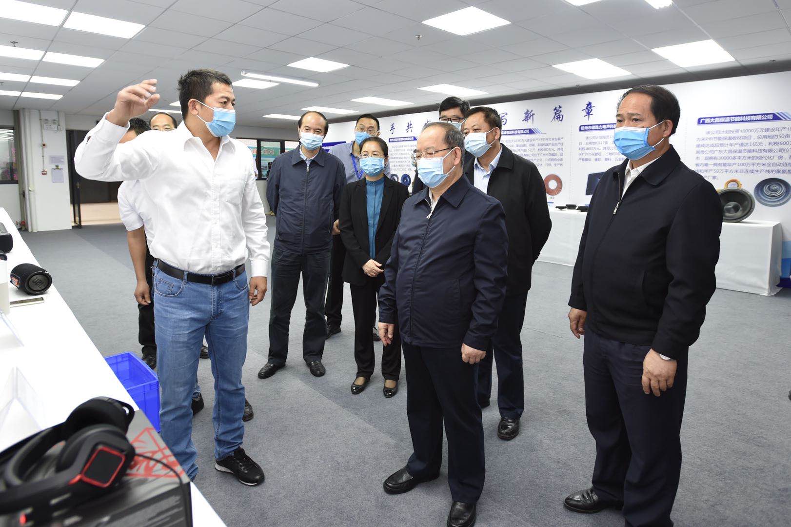 4月22日,自治区党委书记、自治区人大常委会主任鹿心社来到梧州循环经济产业园区,考察东融园区平台建设和产业协同发展情况。邓华/摄