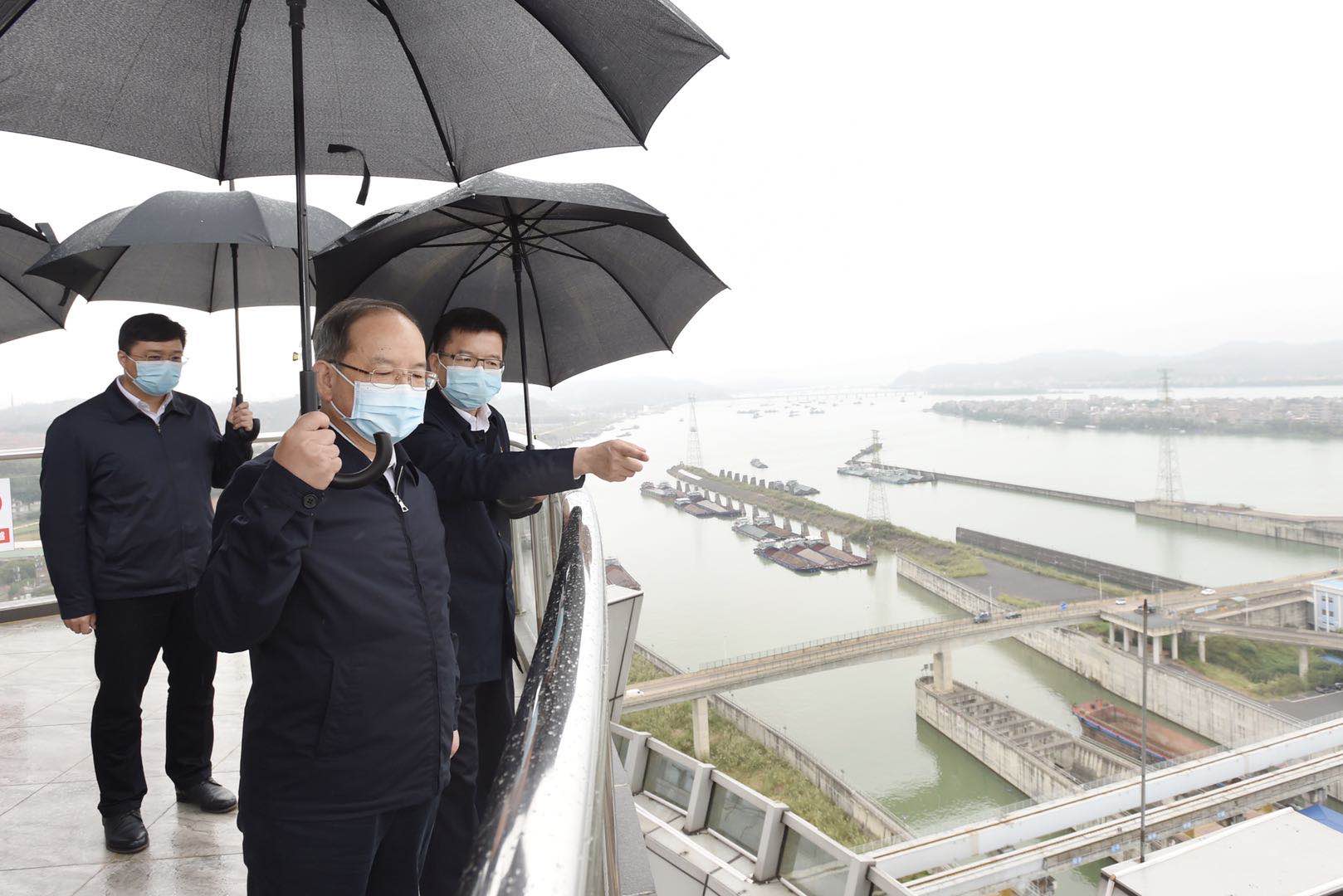 4月22日,自治区党委书记、自治区人大常委会主任鹿心社来到广西西江船闸运行调度中心,考察基础设施互联互通情况。邓华/摄