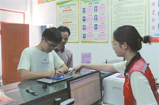 7月20日,记者在都安瑶族自治县学生资助中心看到,不少收到录取通知书的家庭困难学生正在办理助学贷款。毕业于都安高中564班的梁庆财,今年考取清华大学土木工程专业,他告诉记者,姐姐就读于上海政法学院,家里同时供养两个大学生,负担颇重,因此申请了助学贷款。