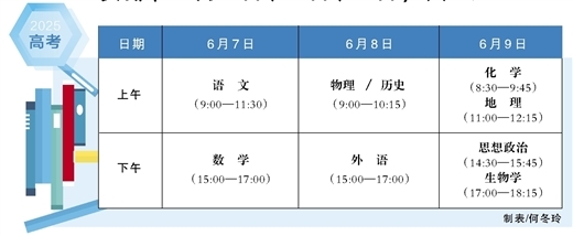 2月19日,自治区招生考试院发布公告,广西2025年普通高考时间确定为6月7日、8日、9日,共3天(见上表)。