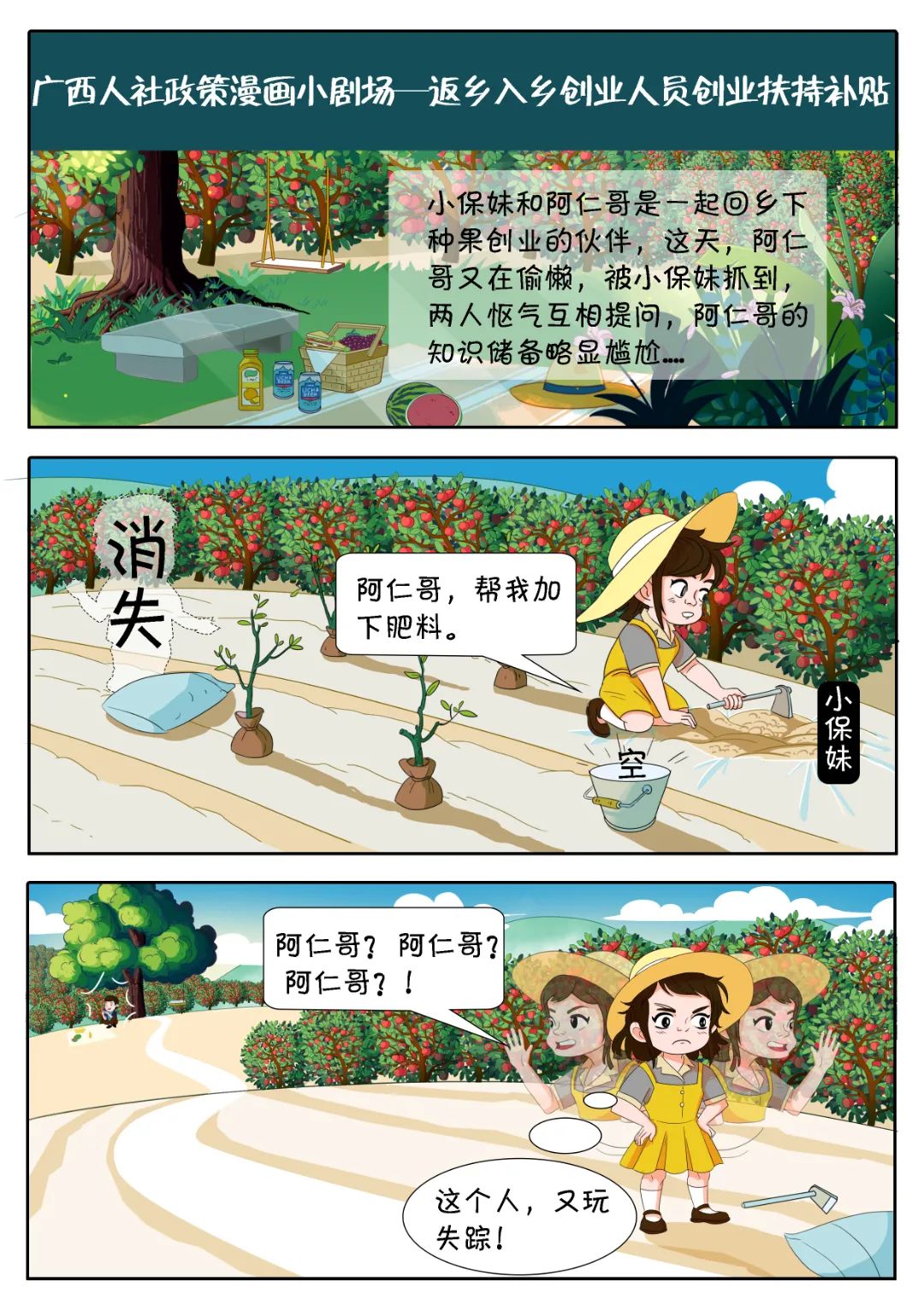 【政策漫画】广西人社政策漫画小剧场——返乡入乡创业者们别错过,创业补贴很给力!
