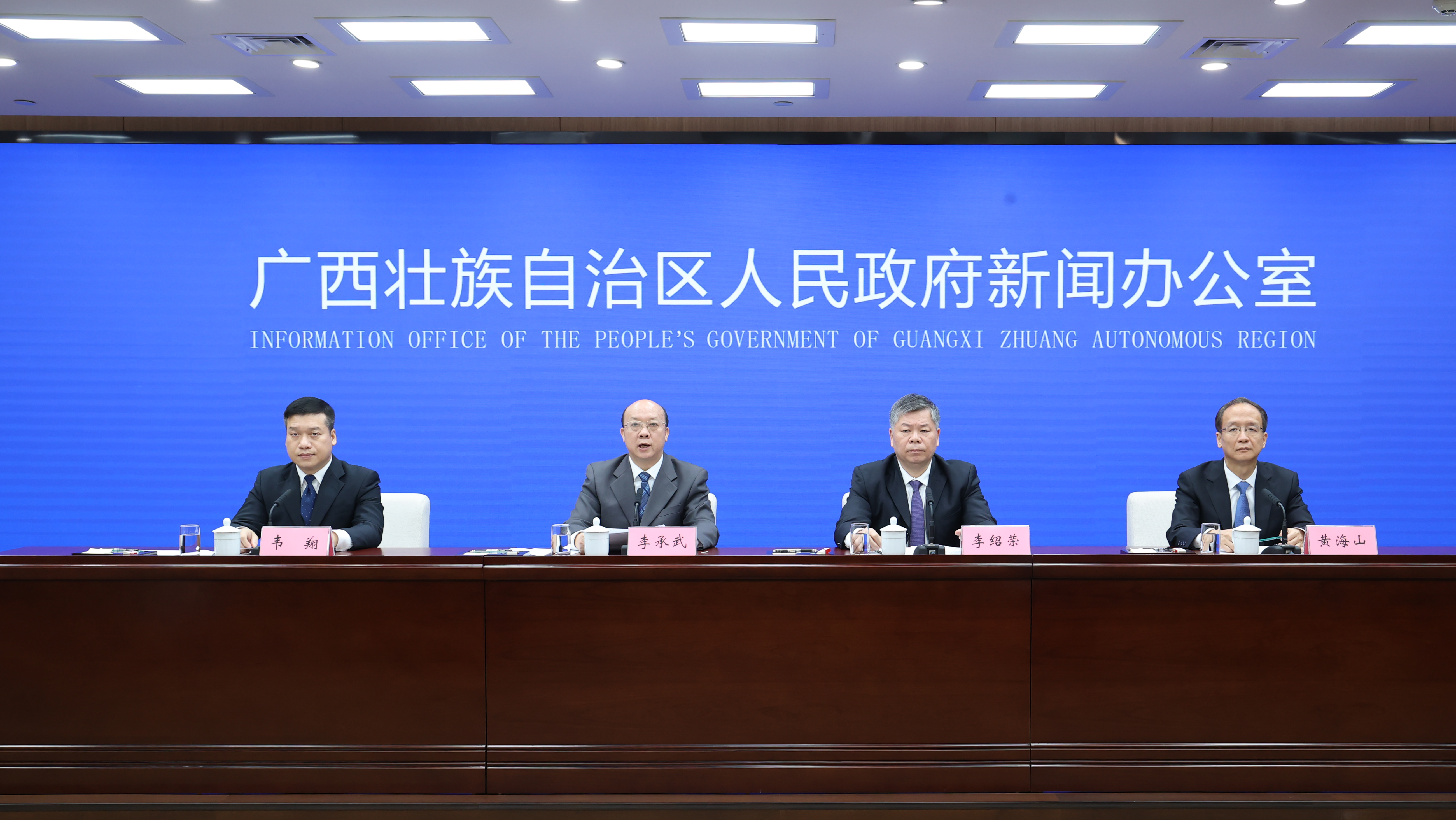11月18日,自治区政府新闻办举行“壮美广西·智慧广电”工程建设成果新闻发布会。自治区广电局党组成员、副局长李承武,广西广播电视台副台长李绍荣,广西广电网络公司常务副总经理黄海山介绍有关情况并回答记者提问。发布会由自治区政府新闻办副主任韦翔主持。