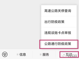 ②点击菜单栏“互动”,选择“公路通行防疫政策”,打开小程序;