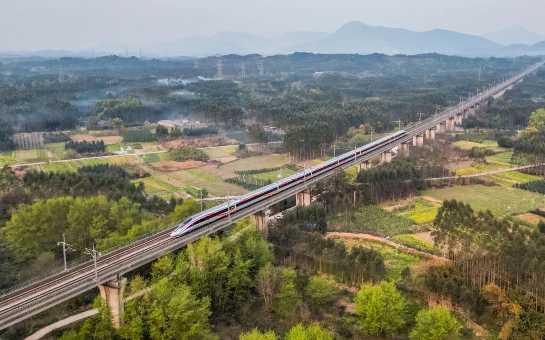动车组列车飞驰在贵广高铁桂林区段。(陈泉任 摄 )