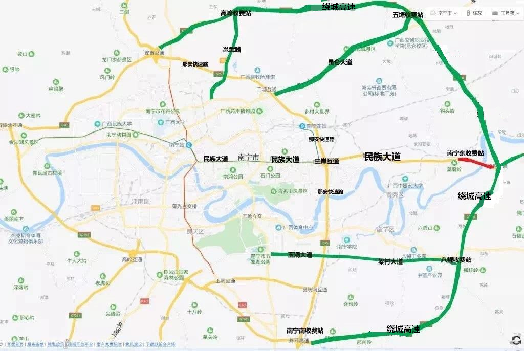 进城:可选择绕开安吉收费站,从安吉东、高峰、五塘收费站进入南宁市区。