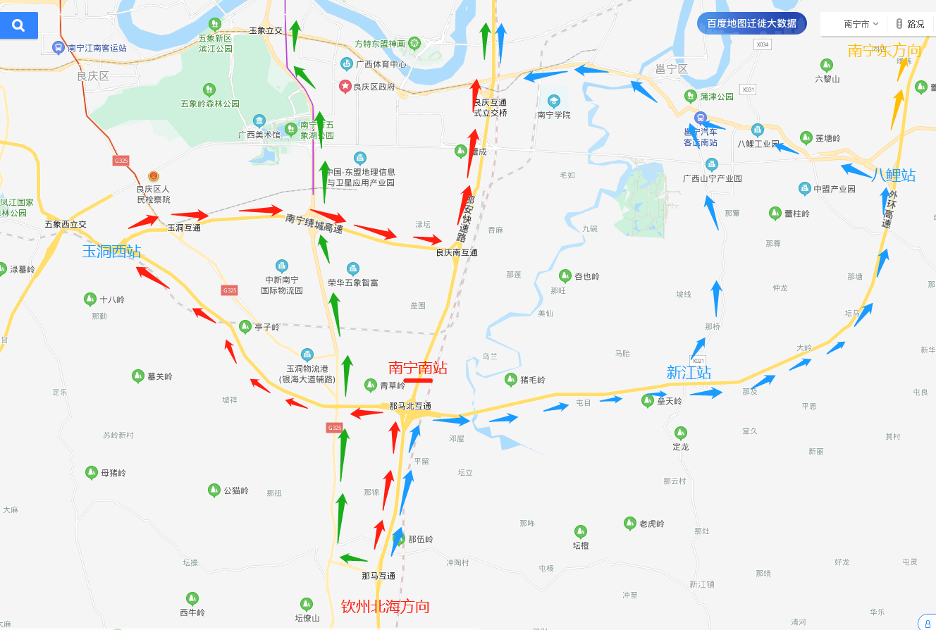 进城:可以从武鸣、伊岭岩收费站出站避开拥堵路段,绕行南武城市大道进城;或者是绕行037县道→走邕武路、高峰林场进城。
