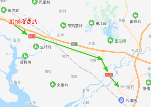 G75兰海高速→那丽收费站→国道G325→合浦