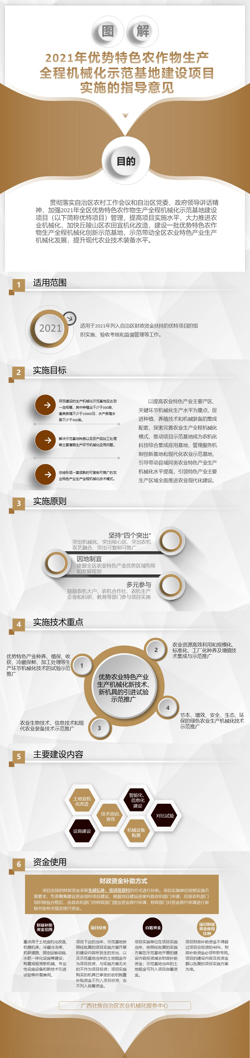 相关文件:广西壮族自治区农业机械化服务中心关于印发《2021年优势特色农作物生产全程机械化示范基地建设项目实施的指导意见》和《2021年高效机收糖料蔗生产全程机械化示范基地后补助建设项目实施的指导意见》的通知