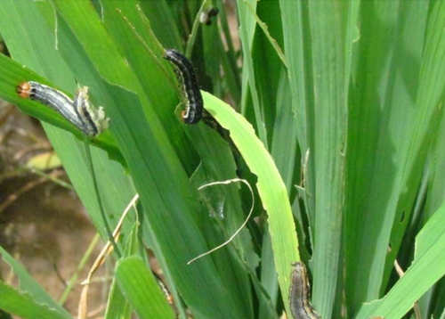 粘虫,又称行军虫,属鳞翅目,夜蛾科,危害水稻、甘蔗、玉米等禾谷类粮食及蔬菜、豆类等104种植物。以幼虫食叶危害植物,大发生时可将作物叶片全部食光,同时因其群聚性、迁飞性、杂食性、暴食性,成为重要农业害虫。