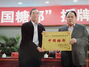 时任中国糖业协会理事长贾志忍为“中国糖都”授牌