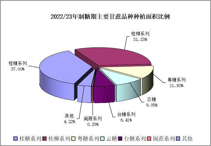 我国甘蔗生产的自然环境较恶劣,70%以上种植在旱坡地上,土壤瘦薄,灌溉等基础设施条件差,旱灾危害突出,是“望天田”。研究推广甘蔗旱坡地高产高糖良种、旱地种植技术,选育耐旱瘠、早生快发、根系发达的品种极为重要。有霜冻发生的蔗区,宜选用宿根性强、较耐寒的品种。部分蔗区病害较严重,在选用品种进行推广时,根据不同蔗区病害发生情况,选用抗病良种。二十世纪80年代至90年代中期,我国主要推广的品种有粤糖63-237,根系发达,风折率低,较耐旱、耐肥,宿根性好,适应性广,高产稳产,制糖工艺性能良好,质与量兼优。广西推广桂糖11号,最多时约占种植面积的50%。90年代后期,全国蔗区呈现新台糖系列、粤糖系列和桂糖系列三足鼎立的态势。