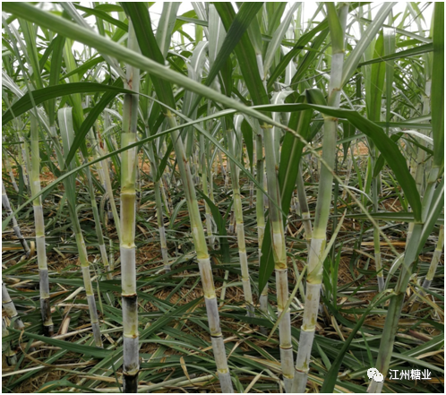 现在正值甘蔗伸长期,甘蔗每天都会伸长2厘米左右,除了我们人为地提供足够的肥料和水分外,还离不开进行光合作用的叶片;甘蔗属C4作物,主要靠叶片的光合作用来为甘蔗伸长提供必需的能量物质,叶片数量、叶片质量是甘蔗夺取高产的保证,过早地剥除甘蔗绿叶,造成甘蔗叶片数量不足,按甘蔗生理要求,必须留着9张完整功能叶,才能满足甘蔗生长需要。