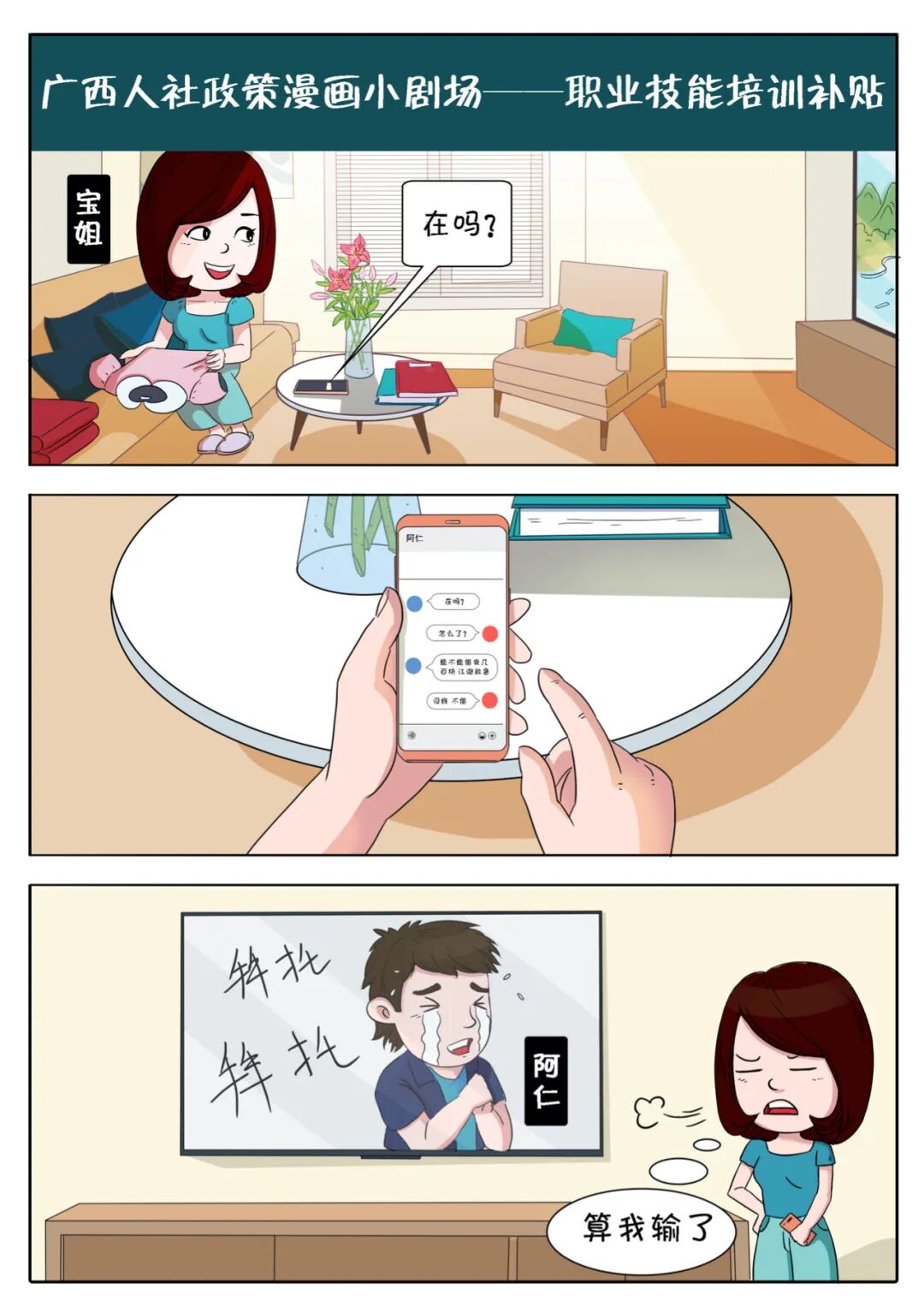 【政策漫画】广西人社政策漫画小剧场——职业技能培训补贴