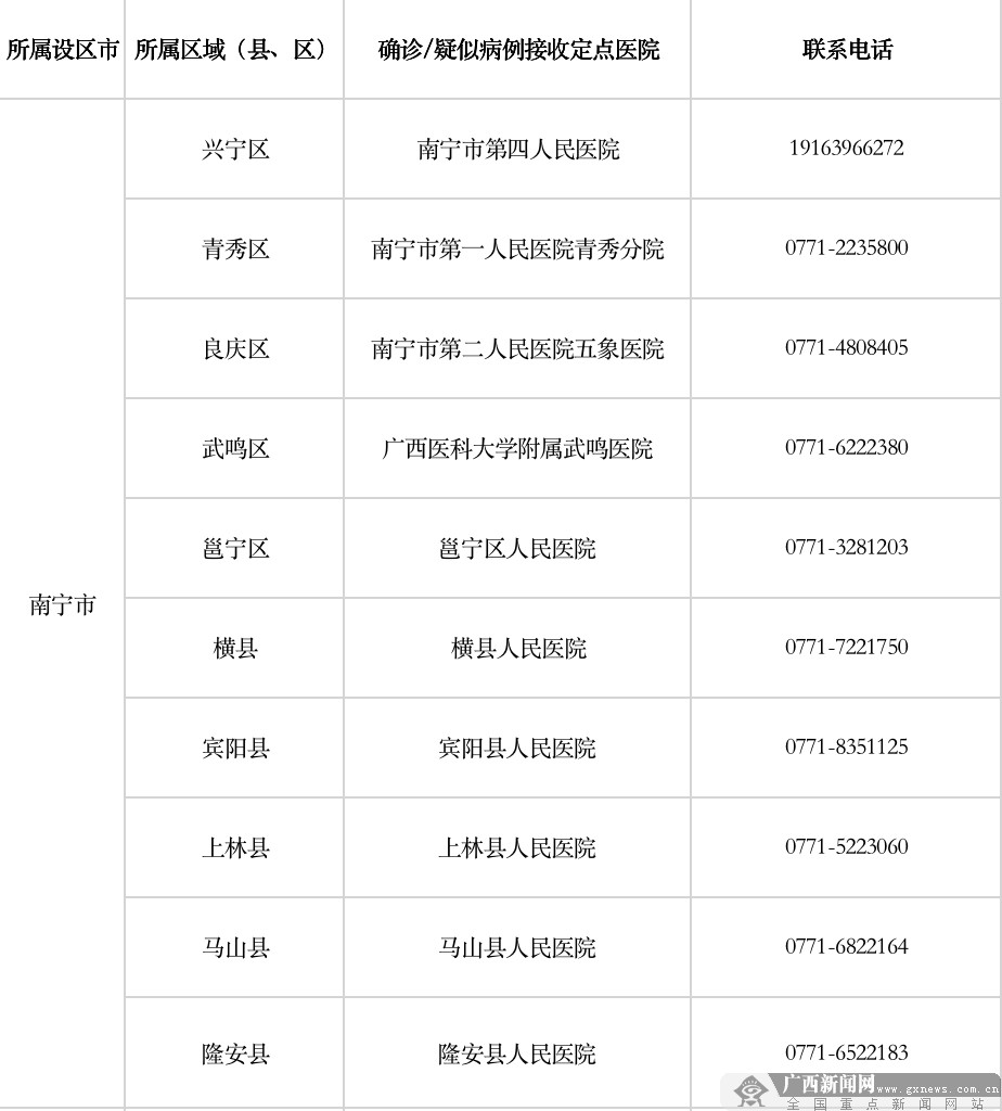 最新|广西14个设区市新冠肺炎定点接收医院(汇总)
