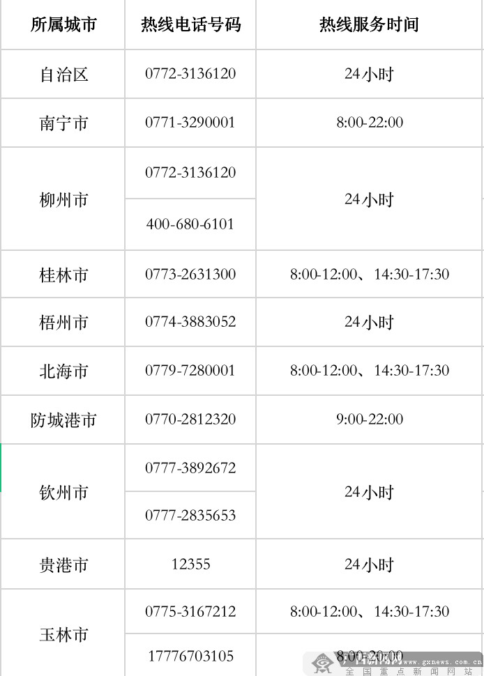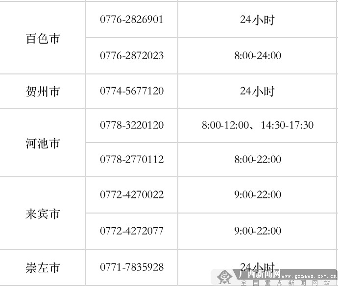 此外,自治区卫健委还公布了广西各地应对新冠肺炎心理援助热线,具体如下: