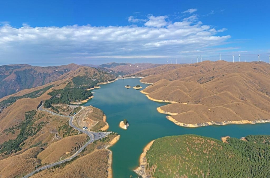 冬日,位于高山上的广西全州县天湖国家湿地公园湖水清幽,壮观美丽。(周华)