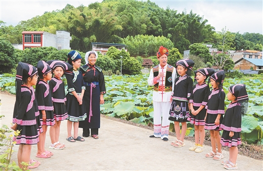 记者离开三联村小学,身后悦耳嘹亮的高腔诗雷饱含壮乡儿女情,乘着清风回荡在山谷间,声声不息又生生不息。(钟钰双 管林华 农苑芬)