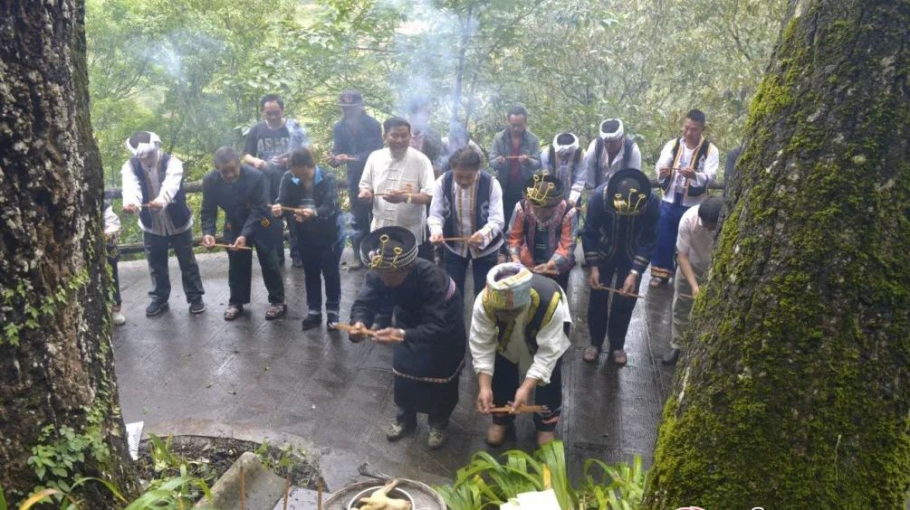 仡佬族人共同祭拜青冈树(资料图片)。杨丽萍 摄