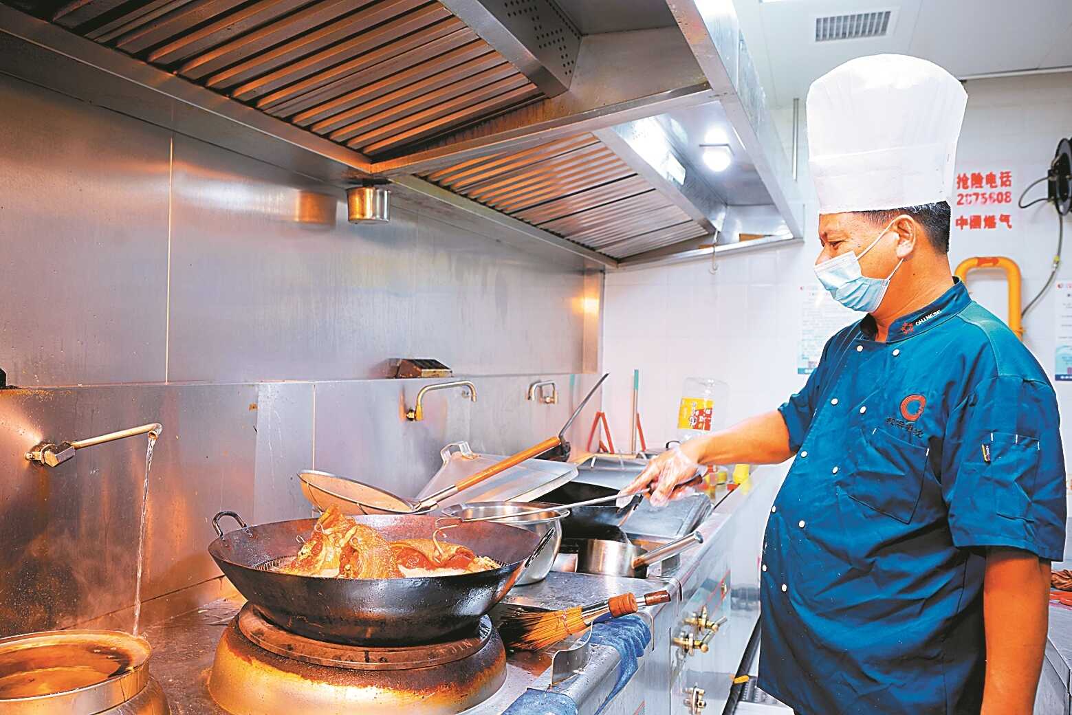 厨师在炸猪脚。均为陆敏 黄开碧 摄