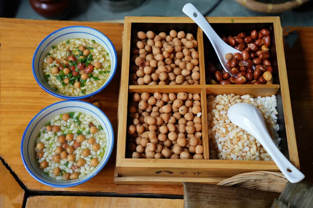 “恭城油茶”是恭城瑶胞的一种传统食品,据史料记载始于唐代,距今已有1000多年的历史。恭城人每天早餐都要“打油茶”,有的家庭甚至三餐离不开油茶。
